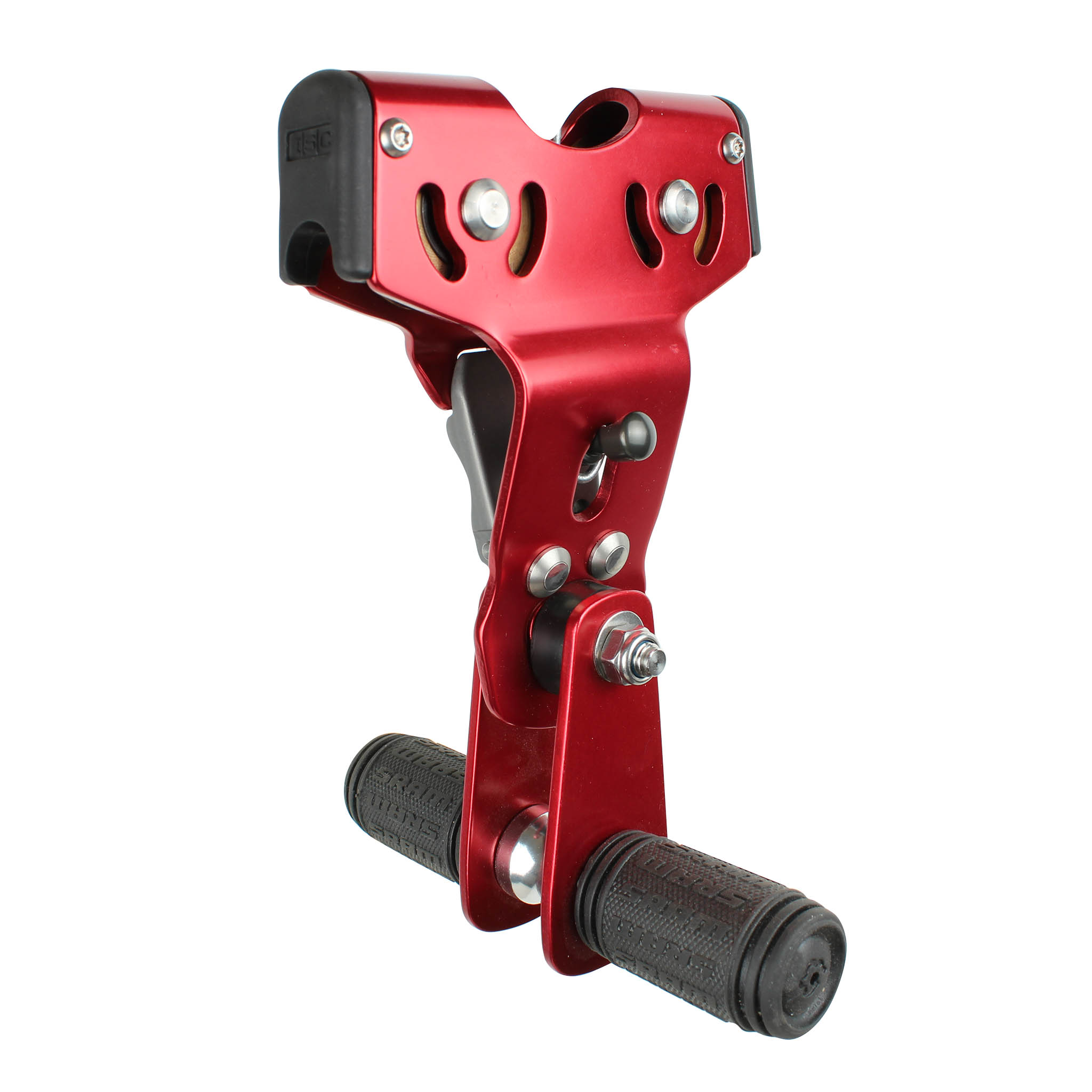 High quality pulley fitted with handlebars. The Zippey can be attached to the wire with 1 hand action.