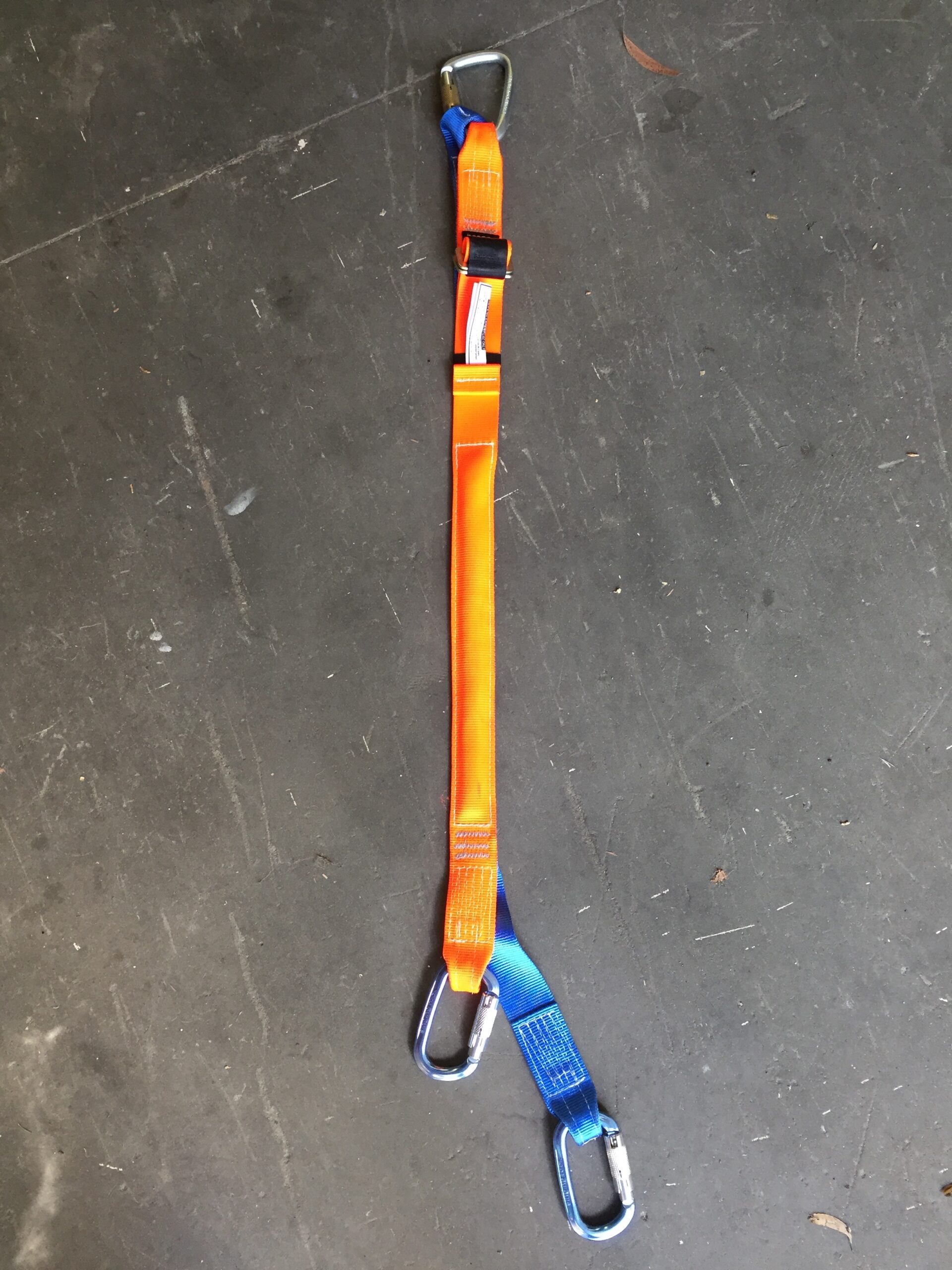 The sky rider PRO is a sewn webbing lanyard, so no knots need to be tied, it it can be adjusted so the user can hang 850mm - 1050mm beneath the zip line pulley.